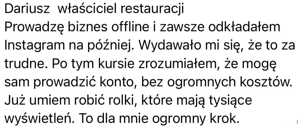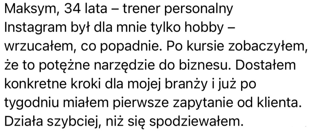 zaczynasz widzieć, że Instagram naprawdę działa i daje konkretne rezultaty.